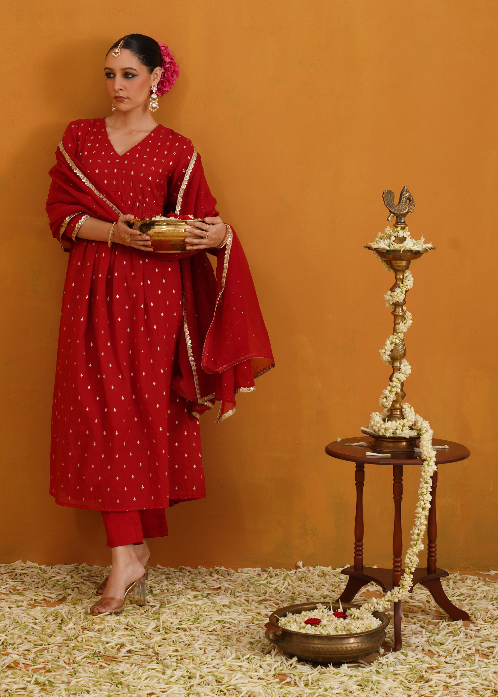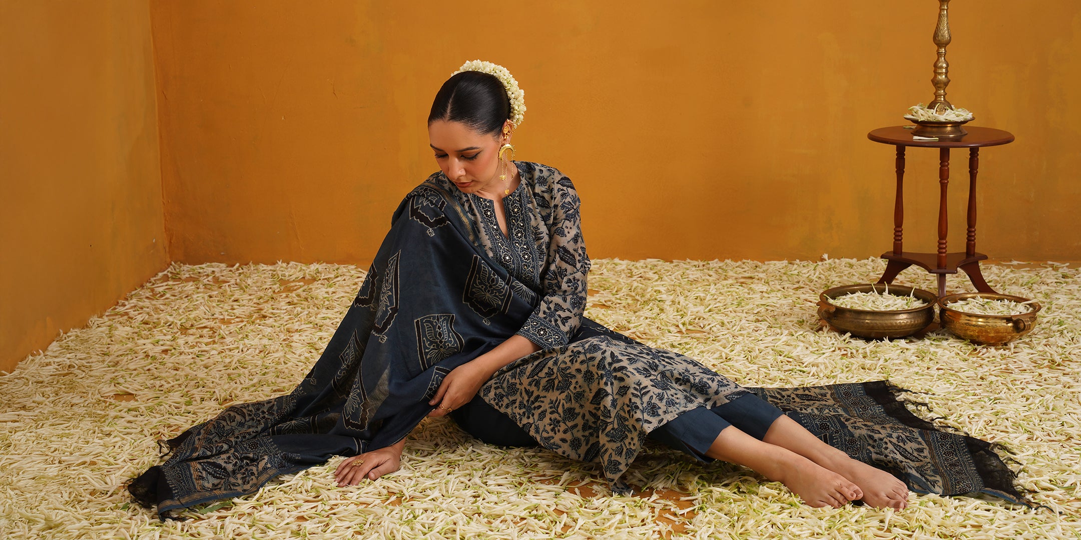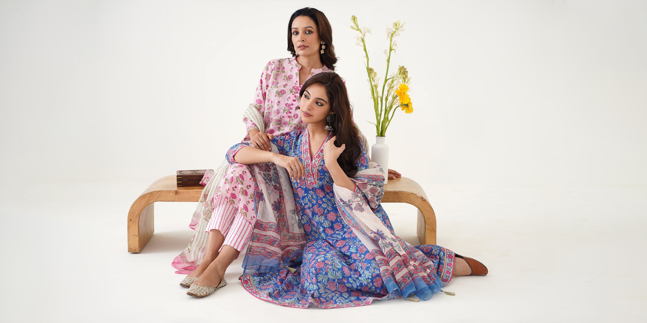 Our collection showcases the beauty of hand-block printing, a technique that involves our skilled artisans meticulously hand-carving intricate designs onto wooden blocks, which are then used to imprint these beautiful patterns onto luxurious fabrics. Additionally, our talented embroiderers add delicate and ornate embroidery to enhance the beauty of each piece. Each creation represents the fusion of skill, creativity, and tradition.